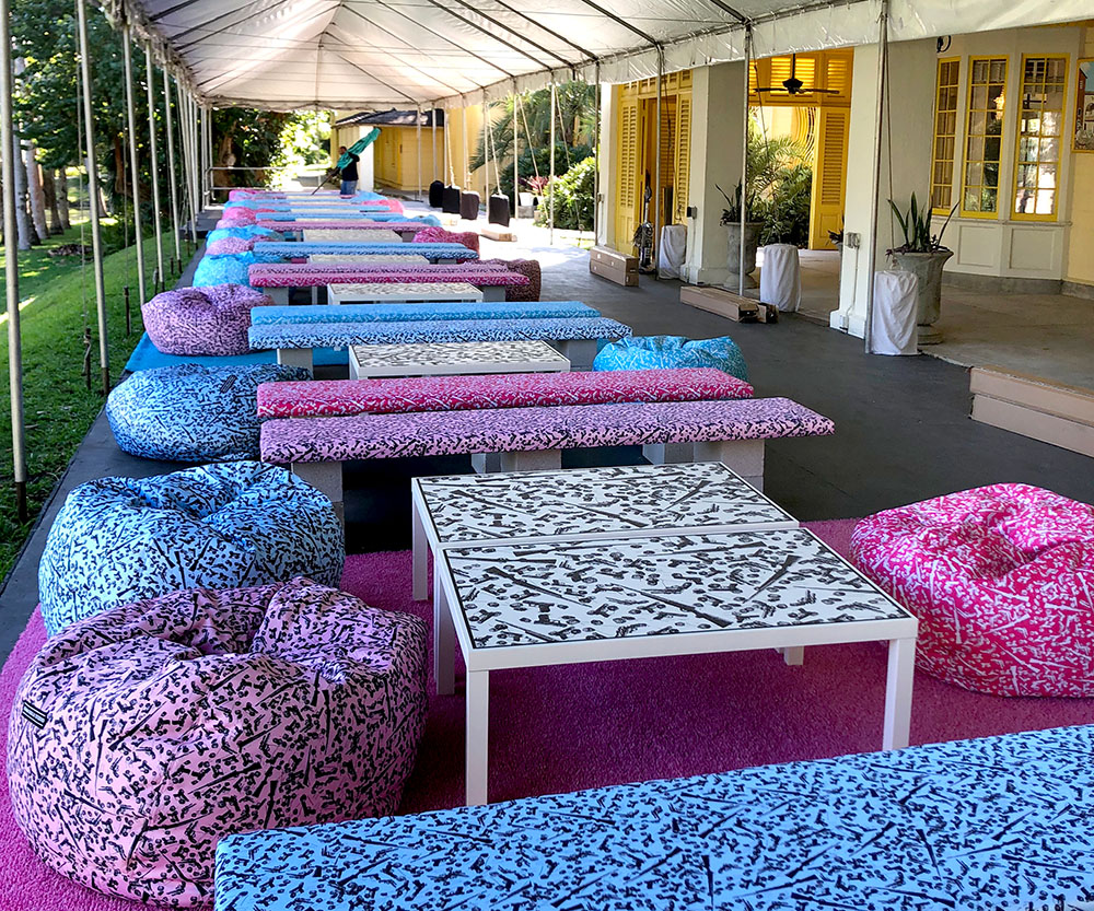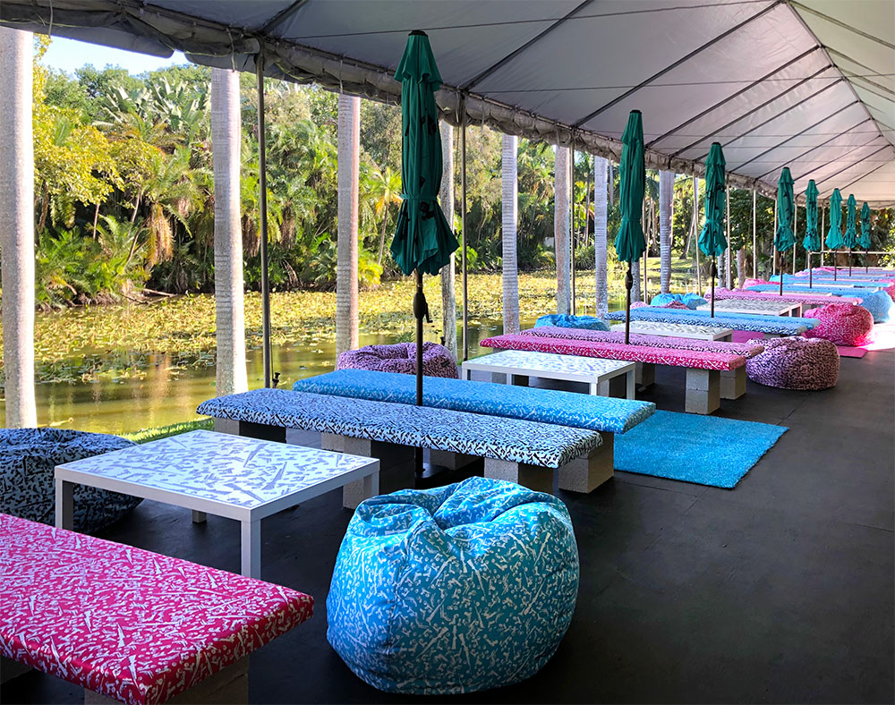 A full reimagining of the lounge created for Studio 1608, reconfigured at the historic Bonnet House Museum and Gardens for Art Fort Lauderdale, 2020.