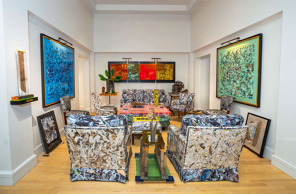 TrashFormations is my attempt to navigate the fine line between transforming trash and allowing it to remain what it is, grounding the work not in grand global themes but in the overlooked environments of roadsides, alleyways, and parking lots. Influenced by artists such as Nevelson, Rauschenberg, and Duchamp, I work with the common and discarded while still pursuing beauty, using context as a central material—removing objects from dumpsters and streets so the viewer can truly see what has long gone unseen. Shaped by my 50-year career in interior design and its traditions of shaping domestic space through patience, craft, and countless decisions, TrashFormations continues the historical role of interiors by using everyday furniture and salvaged materials to reflect our time, place, and society, and to reveal something unexpectedly beautiful. For a full description click here.